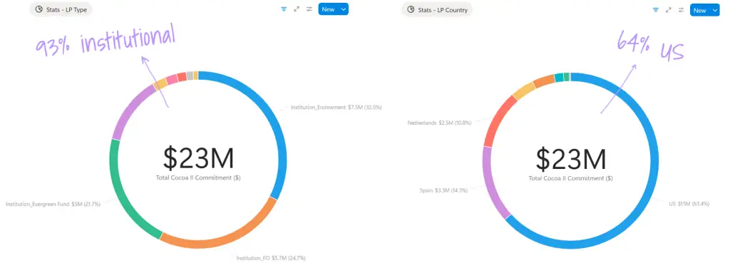 Cocoa II (2025) is a $23M fund, anchored by Sapphire Partners (San Francisco), Alfred I. duPont Charitable Trust (Jacksonville), The Dietrich Foundation (Pittsburgh) and SITFO (Salt Lake City). And backed by other great institutions and incredible humans like Marktlink Capital, Integra Global Advisors, Speld, First Close Partners and more.